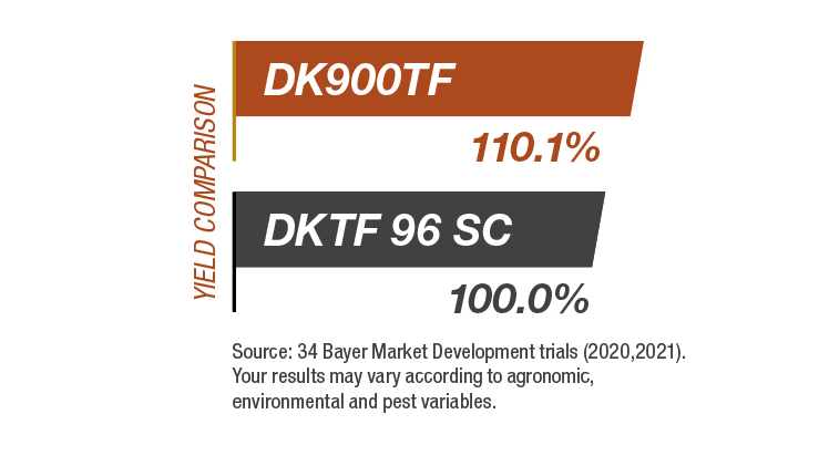 This high yield potential hybrid has excellent harvestability with test results showing a yield increase over DKTF 96 SC.